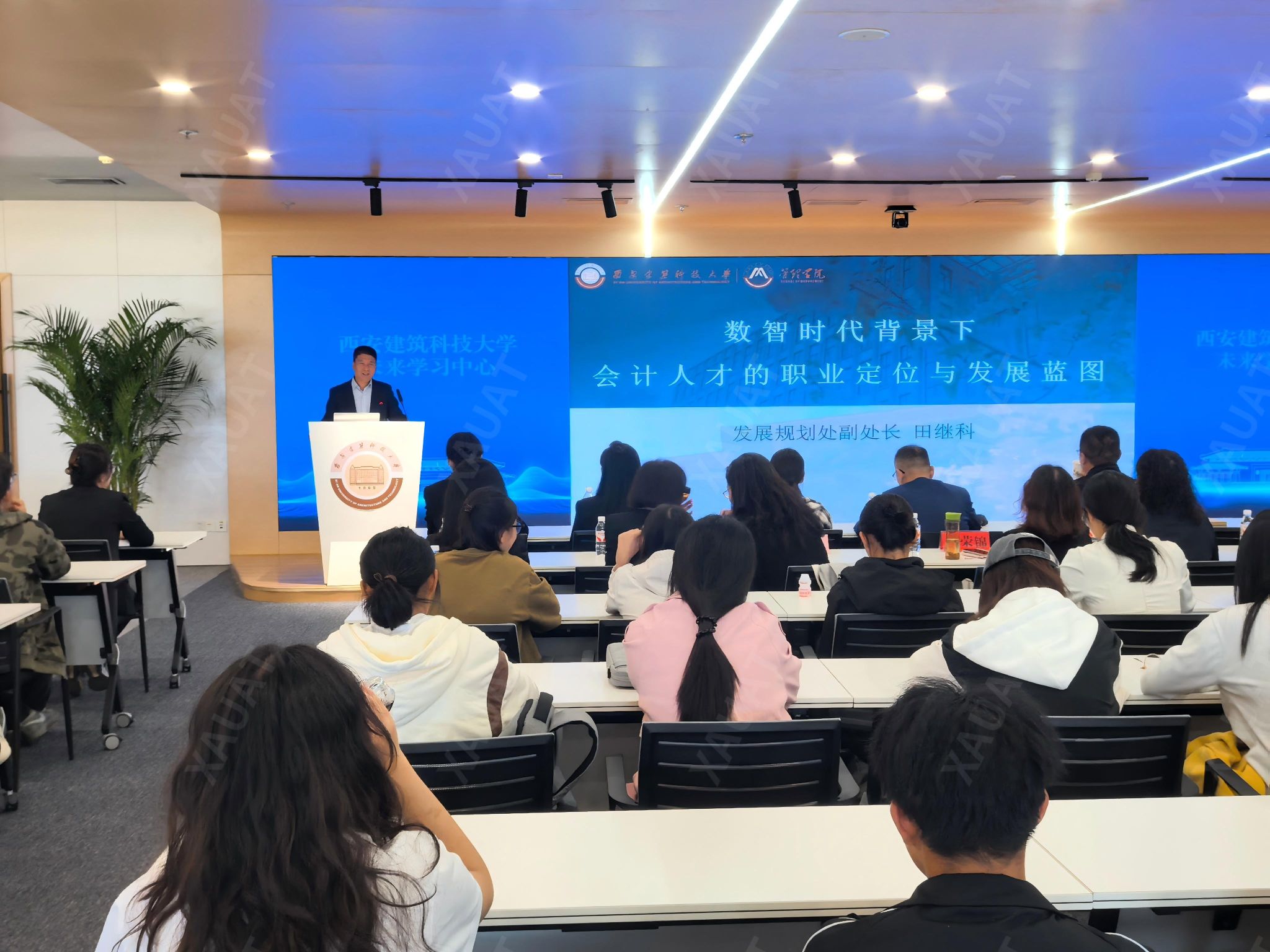 校发展规划处副处长田继科老师立足数智化发展趋势,深入阐述会计人才在新技术背景下的职业定位转变与未来发展方向,启发师生重新审视专业能力培养重点。